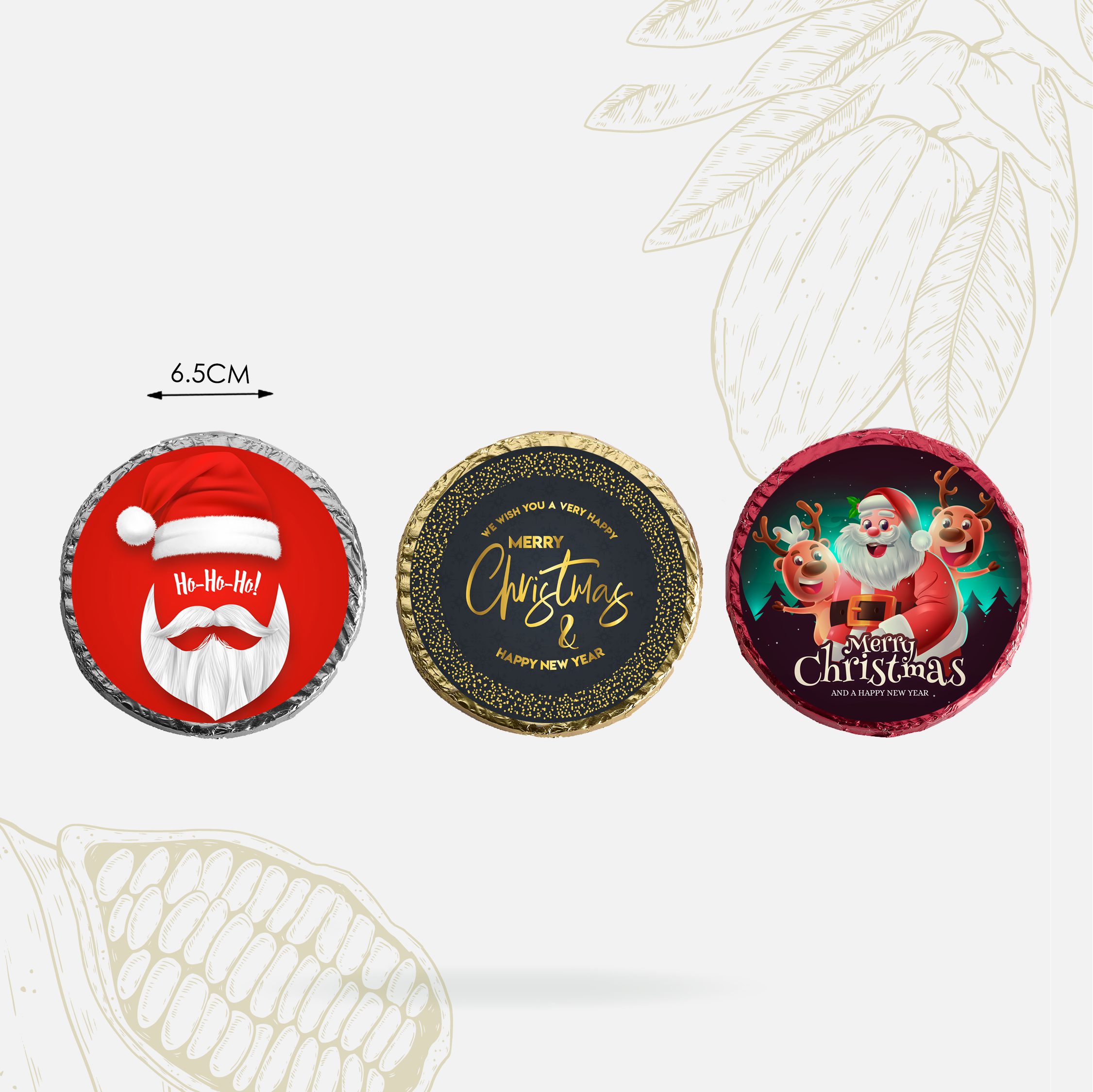 Each design of 10 coins chocolate, Total: 30 coins chocolates